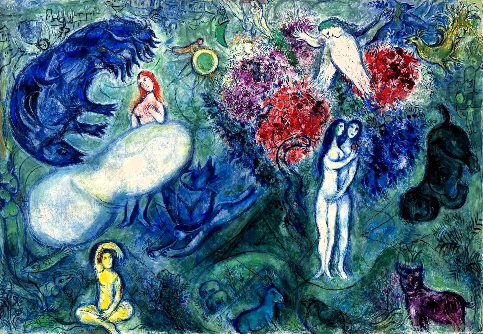 Ilustração gerada à partir da inspiração de Adão e Eva no Paraíso de Marc Chagall