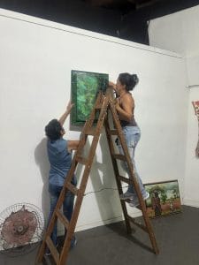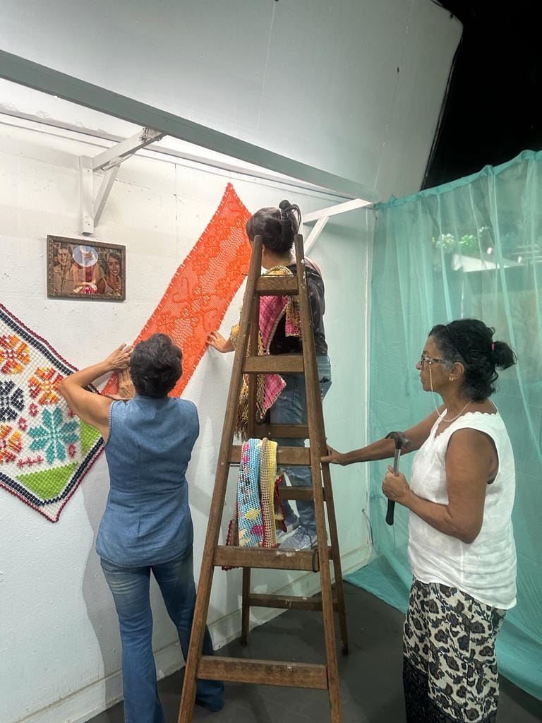 Fotos e vídeo – As próprias artistas montaram a exposição coletiva.
